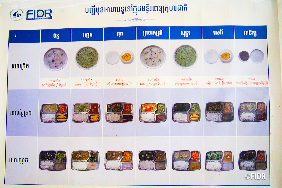 FIDRは、2008年からカンボジア国立小児病院での病院給食と栄養管理システム導入および人材育成に力を注ぎ、同国の保健省とも良好な関係を築いてきました。その信頼もあり、2013年に保健省から食生活指針の策定に力を貸してほしいとの要請を受けました。