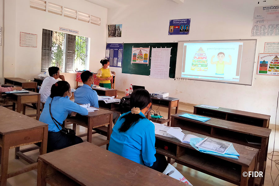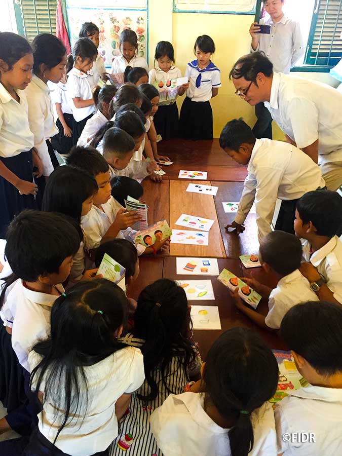 カンボジアでは、2025年から学校教育に保健科目が導入され、その一部として栄養教育が始まる予定です。FIDRは、2019年からカンボジア教育省とともに、栄養の教科書づくりに取り組んできました。