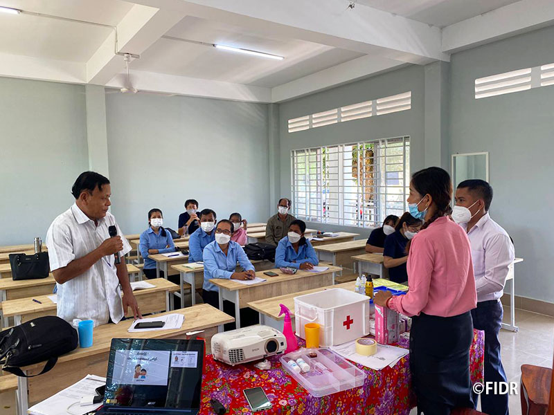 FIDRはカンボジア全国で栄養の授業を開始するためのモデルとなる4つの学校をコンポンチャム州内に定め、教員研修や環境の改善を進めています。しかし新型コロナウイルスの感染拡大で、今年3月から全国の学校は休校になりました。9月下旬から学校は徐々に再開されましたが、学校が閉鎖中の間も、各校において、校長先生がリーダーシップを発揮して様々な取り組みを進めていました。