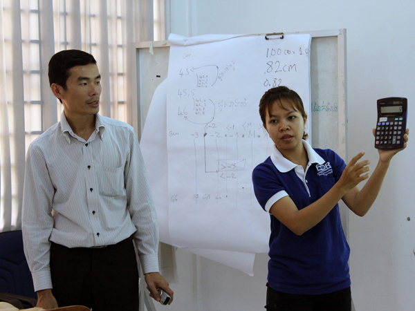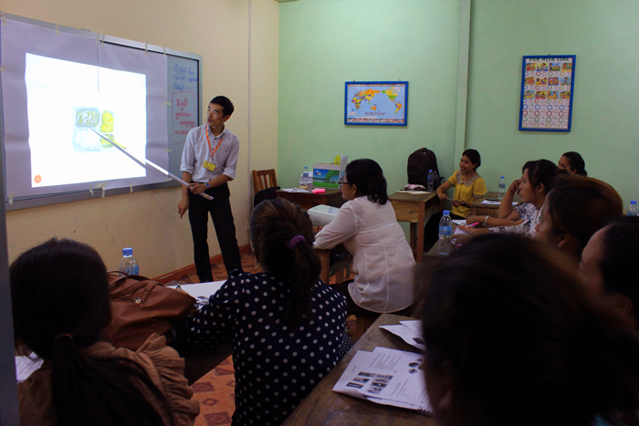 まず、PSE職員に栄養の基礎知識を教えることから始めました。9月初旬に行われた初回の講義には、PSEの調理員、医師、教師、ベビーシッター等16名の職員が出席し、栄養の重要性や三色食品群等について学びました。出席者からは、「今日の学びは、仕事でも家庭でも役に立ちそう」「テレビやラジオで聞いたことのある話が、ようやく理解できた」といった感想が聞かれました。