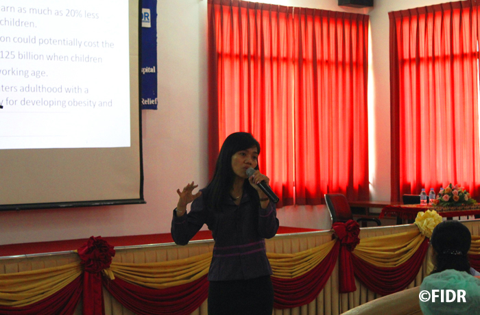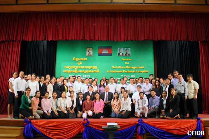 3月7日、FIDRは、カンボジア国立小児病院(以下「NPH」)とともに『栄養管理セミナー2016』を実施しました。本セミナーには、NPHの医師・看護師のほか、カンボジアの栄養政策を決定する保健省次官、国家栄養プログラム室長、さらに本プロジェクトに関わるさまざまな機関から総勢約70名が参加しました。