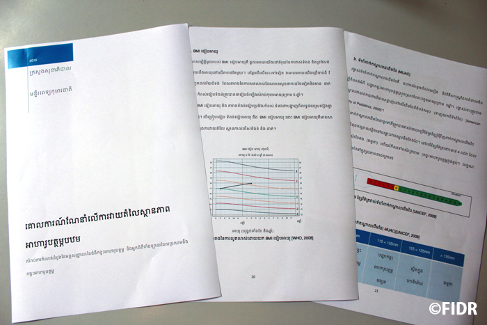 この調査結果をもとに、プロジェクト・アドバイザーである専門家の先生方にご協力いただきながら、国内の6歳から17歳までの子どもたちの推奨栄養所要量および目指す身長体重を算定しました。カンボジアでは今まで東南アジアの推奨栄養所要量が用いられていたため、自国のものができるのは初めてのことになります。