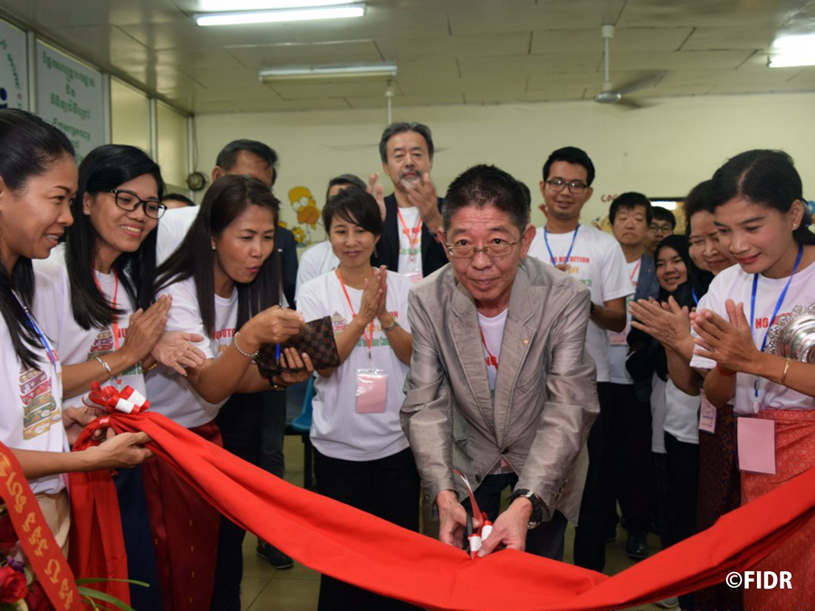 またこの日、カンボジアの国立病院で初めてとなる「栄養カウンセリングルーム」の開設式も行われました。カウンセリング・サービスの開始に向けて、これまでFIDRの栄養専門家が栄養科のスタッフに研修を行ってきましたが、これからは彼女たちが地道に様々なケースを扱い経験を積んでいかなければなりません。栄養科のスタッフにとっては、これからがまた新たな道の始まりです。