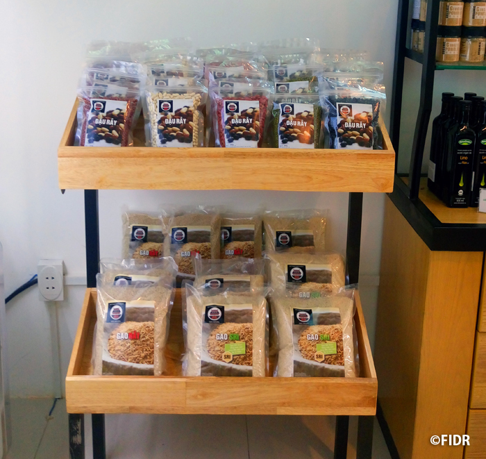 今回協力してくれたのは、ベトナム事務所があるダナン市にあるオーガニックショップ。経済がよくなるにつれ健康志向のベトナム人も増え、有機栽培など農薬を減らし環境や人に配慮して育てられた農産物は高価でも売れるようになり、市内にも有機野菜販売店が数多くみられるようになりました。