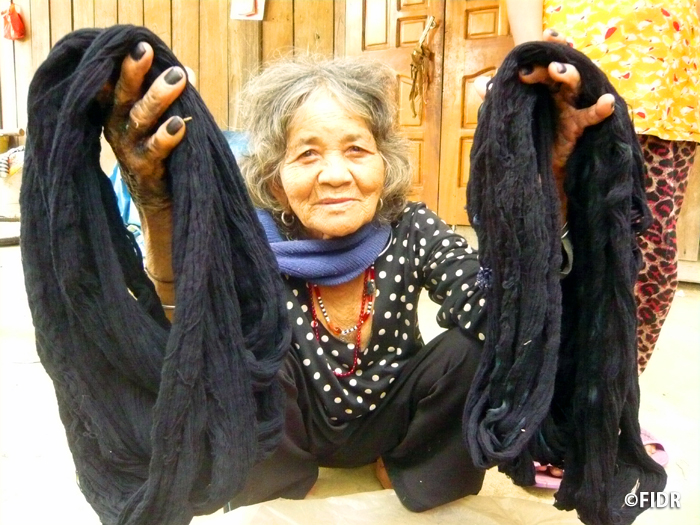 さて、FIDRがずっと懸念していたことがあります。今から数年前に実施した「ベトナム少数民族手工芸支援」プロジェクトのころ。織り手が少なくなった伝統織「カトゥー織」の技術を後世に伝えるべく立ち上がった女性たちをFIDRは支援していましたが、そこである情報を手に入れます。より山深い地域に、遠い昔より綿花を栽培し、天然染色を行い、ナムザン郡でもレアな「かすみ(しぼり)」の技術を持つ女性がいる・・・と。しかもその女性はすでに高齢で、外国人も入れない国境に近い山岳地で暮らしているというのです。