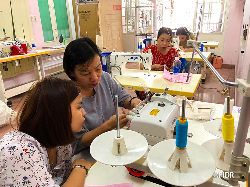 商業と観光の都市として世界的に注目を浴びているダナン市でも、母子世帯や進学できない若者などは厳しい生計事情にあります。FIDRは現地の福祉団体と共同で職業訓練を通じた自立支援を行います。