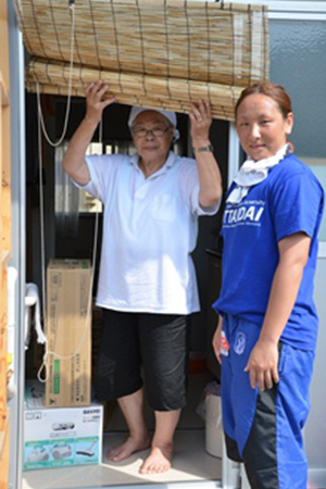 7月中旬には、山田町で最大規模であり174世帯が入居する仮設住宅団地に、扇風機、掃除機、さらに冬に備えて石油ストーブを提供しました。