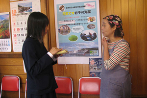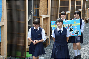 8月20日、宮古市実田の仮設住宅内の集会所で、被災者の方々においしいお茶とお菓子をふるまって元気になってもらおうと、同校茶道部によるお茶会が催されました。「自分たちにもできることを何かしたい」という部員一人ひとりの想いが、今回の活動を立ち上げました。