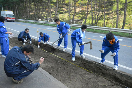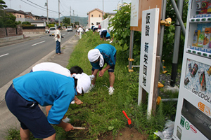 2012年6月1日、岩手県立水沢工業高等学校の『水工被災地ボランティアグループ』は、陸前高田市で草取りと細かいがれき撤去のボランティアを行いました。作業を行ったのは、被災前は72世帯が暮らしていたという住宅跡地。「以前は72軒あった家も、残ったのは2軒だけだった」と作業前に聞いた話を心に刻み、少しでも力になりたいと総勢220名で一生懸命作業に取り組みました。