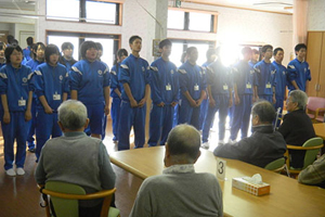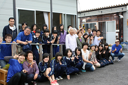 参加した51名の生徒さんたちは、進んでお年寄りの方々とおしゃべりをしたり、子どもたちと一緒に遊んだりしました。「たいへんな経験をしているのに、おじいちゃんもおばあちゃんも子どもたちも元気なので驚いた」と逆に元気をもらったという生徒さんも多かったようです。担当の先生も、高校生が復興のために地域に貢献できる可能性を強く実感されたとのこと。今後も、ボランティア活動を継続していくそうです。