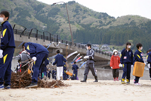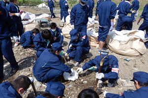 「何を拾っても「これは誰かが使っていたものだ。まだ誰かが探しているかもしれない。本当に処分していいのだろうか」と思いました。大きなものは片付いているけど、小さいものはまだあちこちに残っていました。これらを片付けるのには、多くの人手が必要で、内陸の方からも助けが必要なのだと思いました。このボランティア活動を通して、今必要なのは、若い人たちの力だと感じました。これから自分たちの地域を支えていけるのも、高校生だと思いました。」