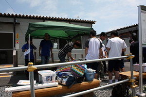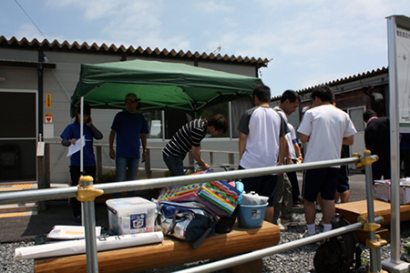 津波によって家を失い、仮設住宅に暮らす人たちに、2度目の夏が訪れました。断熱性能が低い住宅環境に加えて、冷房機器の不足の問題もあった昨年と比べると、少しずつではありますが落ち着いた生活ができるようになったようです。それでも、なかなか周囲の人と接する機会のない方々のため、高校生の自分たちができることをやろうと、前沢高校のJRC同好会や、ウェイトリフティング部有志ら26人は、交流の場『縁側カフェ』を開くことにしました。