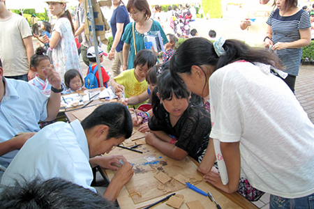 8月5日、黒川高校機械科のみなさんは、地域の一員として、大和町の夏の一大イベント「まほろば祭り」に参加しました。「みんなが楽しめるもの」「危険が伴わないもの」「思い出が形に残るもの」というポイントで話し合い、決定したのは「かんたん鋳造でオリジナルキーホルダーをつくろう!」という企画。被災による心の傷を「モノづくり」で癒したいという思いを込めました。