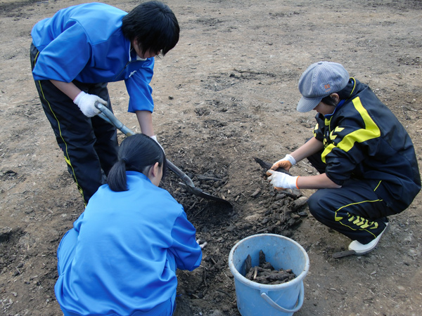 泥まみれの瓦、茶碗、お皿。おもちゃ。お祭りの様子を録画したと思われるビデオテープや写真。思い出の品がぞくぞくと現れました。この場所で人が生活していたんだなと実感したり、改めて津波の怖さを感じたり、これらのものを失くしてしまった人たちは今、どうしているのだろうかと思ったり・・・。拾っても拾ってもでてくる思い出の品と同じ数だけ、生徒のみなさんにもさまざまな思いが巡ったようです。