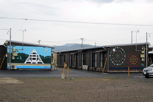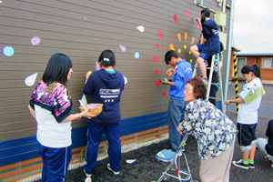 今年6月、双葉町民が避難している福島市飯坂町平野の仮設住宅で、部員22名が2か所に壁画を制作しました。