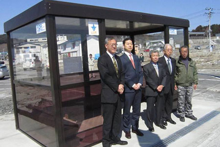 利用者の方々からは「待合室の中は暖かくて本当に助かる。こんなに立派なものを建てていただきありがとうございます」という言葉をいただきました。式典後には宮古方面行きのバスを全員で手を振って見送りました。