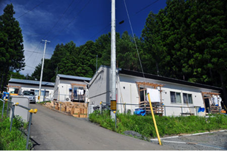 町の中心部から遠くに点在する仮設住宅団地は、火災が起きたとき、消防車の到着まで時間を要する上、隘路を消防車両が通過できないところもあります。また、棟続きの構造は、延焼しやすいという不安を抱えています。各仮設住宅団地には、手動の消火器が備えられていますが、これは約15秒噴射する能力しかありません。