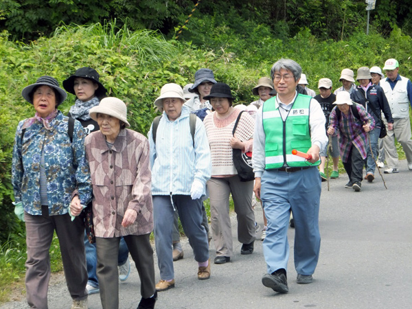 「訓練です。大津波警報が当地区に発令されました」防犯部長の呼び声とともに子どもからお年寄りまで総勢60名の住民の方々が集合場所に集まってきました。各棟の班長の点呼の後、1列に並んで500m先の高台にある避難場所を目指しました。