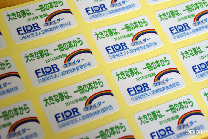 寄贈にあたり、各学校の図書委員会や担当の先生方に購入する本を選んでいただきました。本の種類は親子で読める絵本や学習のための辞書など様々です。各学校へ贈られた真新しいたくさんの本にはFIDRからの「大きな夢は、一冊の本から」のメッセージの書かれた、かわいらしい虹のステッカーが貼られました。