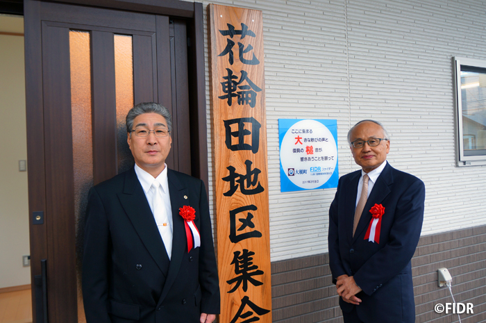2017年4月9日、大槌町花輪田地区においてFIDRが支援した地区集会所の完成を祝う落成式が執り行われ、大槌町平野町長をはじめ、FIDR岡田事務局長、花輪田地区自治会長他、地域住民約30名が参列しました。