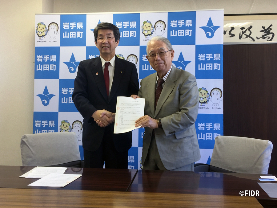 FIDRは町内で最も世帯数が多い飯岡・長崎地区で長く待ち望まれていた集会施設の再建を支援するため、12月20日に山田町と合意を締結しました。