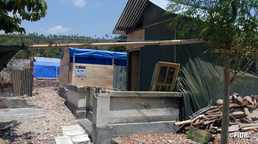 FIDRは、ロンボク島で被災した住民が最も必要としているのは風雨をしのぎ、安眠とプライバシーを得ることができる仮設住宅であると判断し、昨年12月より、現地のNGOと共同で仮設住宅の設置を進めています。これまでに、約25棟が完成し、入居した人々から「風雨がしのげ、快適に過ごせるようになりました」といった声が聞かれています。