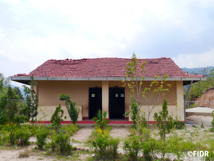 FIDRは震災後、地域総合開発事業の支援対象地であるダーディン郡において、食糧(米)、防水シート、衛生用品の配布、仮設教室の建設による緊急援助活動を実施し、その後、ネパール復興庁より国際協力NGOの中でいち早く建設許可を得、同郡3地区で5校の学校校舎建設を実施、今年6月までに校舎再建を完了しました。