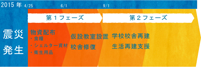 | 仮設教室設置支援 | 100教室分 | 2015年7月20日〜9月3日 |