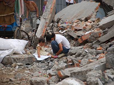 震災発生から3日後の5月15日にFIDRは職員を四川省の省都成都市に派遣し、省人民政府民政庁や衛生庁をはじめとする関係当局や被災現場での情報収集を行いました。