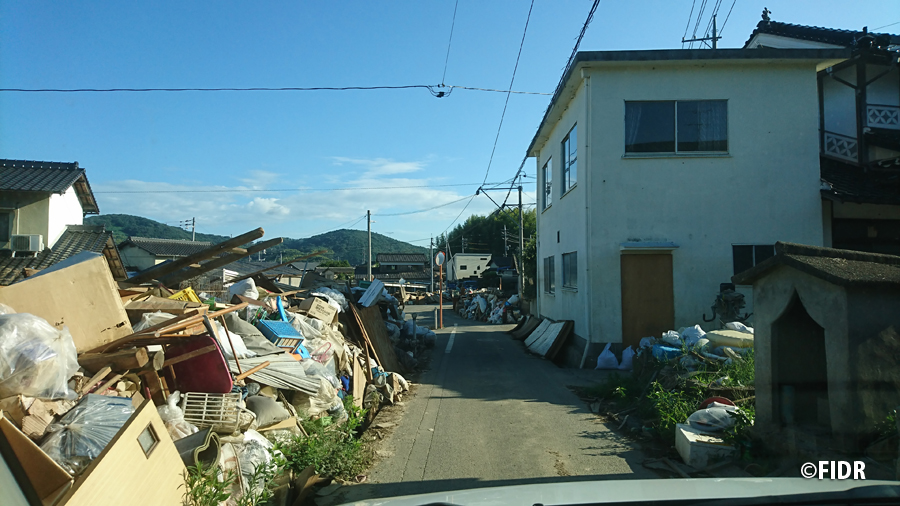 FIDRは、被害の甚大さを鑑み、岡山県倉敷市に、職員を派遣しました。真備町等被害の大きい地域の状況の把握と復興支援等のニーズ調査を行っています。
