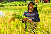 ベトナム山岳地域では伝統的な農法で稲作が行われており、収量は低く、住民は食糧の不足や不安定な収入に見舞われていました。FIDRは地域総合開発プロジェクトを実施し、稲の品種改良や化学肥料や農薬に頼らずに高い収穫を実現できる稲の栽培方法SRI農法を普及しました。これにより、米の生産性が向上し、食糧不足解消につながりました。