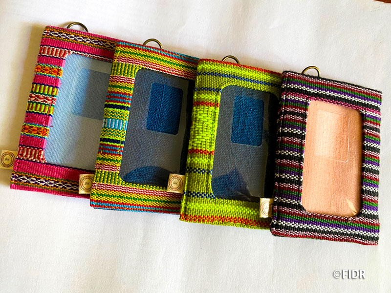 新型コロナウイルス対策のロックダウンが実施される中、織り手の女性たちは、初めて製作するパスケースを一つ一つ丁寧に作りました。織の色合いや、カードが取り出しやすいポケットの設計、ストラップを付けられる金具など、様々な工夫がされたパスケースは美しく仕上がり、織り手の女性たちが自信をもって日本に向けて送りました。