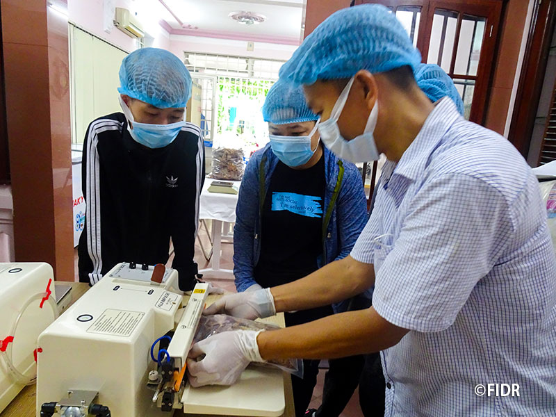 1日目、参加者は真空パック用の機械の操作に慣れず苦労していましたが、2日目からは、スムーズに使えるようになりました。お互いに励まし合いながら、熱心に作業に取り組んでいる様子が見られました。