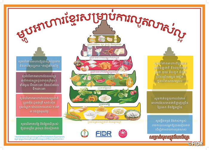 Cambodia was unequipped with FBDG for a long time. Requested by the Ministry of Health, FIDR led the working group for establishing Cambodian FBDG for school-aged children, which was eventually finalized last year and endorsed by MoH. Lately, this Cambodia FBDG was posted in the FAO’s website; the image of the tri-color national flag featuring Angkor Wat was added in the list of FBDG holder countries. It means that the development of Cambodian FBDG was in compliance with the international standard that requires scientific evidences obtained by rigorous survey and analysis.