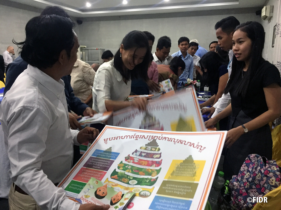 For the first time in Cambodia, the first Food-Based Dietary Guideline (Cambodia version - Food Balance Guide) for children in school age was finally completed by the effort of FIDR and related ministries, international organizations and NGOs in Cambodia in developing the guideline. This dietary guideline was officially certified by the Ministry of Health of Cambodia and became a new guideline for nutritional intake of children. During the development of the guideline, there were many issues to be cleared, therefore, it was a pleasure for FIDR staffs to be able to successfully conduct this FBDG launching seminar.