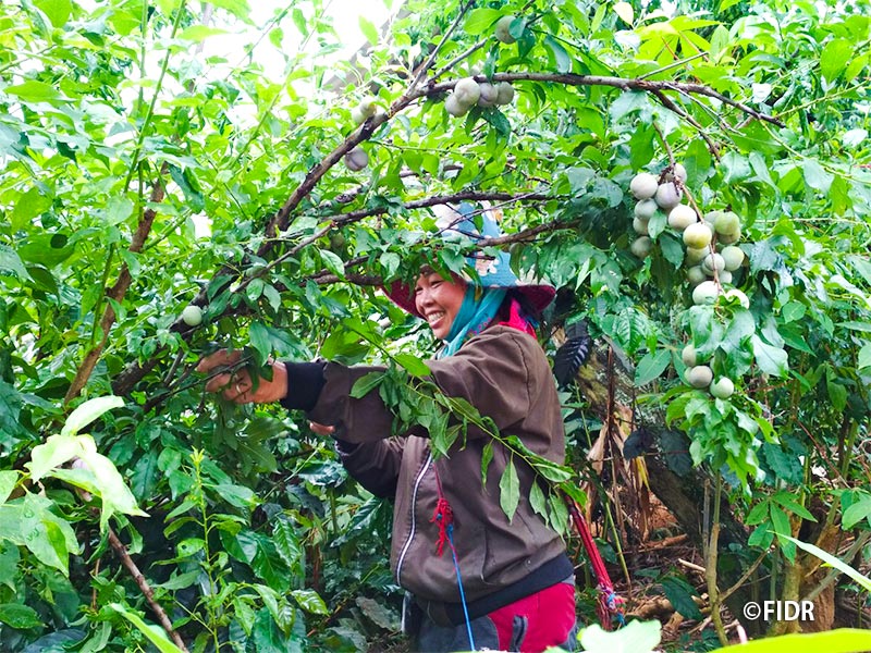 Son La province is recognized as one of the poorest provinces in Vietnam, and it takes 7 hours from Ha Noi city by car. On the way to the project sites, not only the scenery of mountains, but the diversification of agricultural farms and products, such as apricots, plums, mangos, longans, and especially, coffee which covers the hills, also attracted FIDR staff. In Son La province, Catimor coffee which belongs to the Arabica variety is grown with nice aroma, deep taste and high productivity.