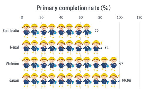 Source: UNESCO (2016)There is a big gap between urban and rural areas in developing countries. Children who could attend secondary and high schools tend to be at urban area, while not a few children in rural area start working without completing primary school education.