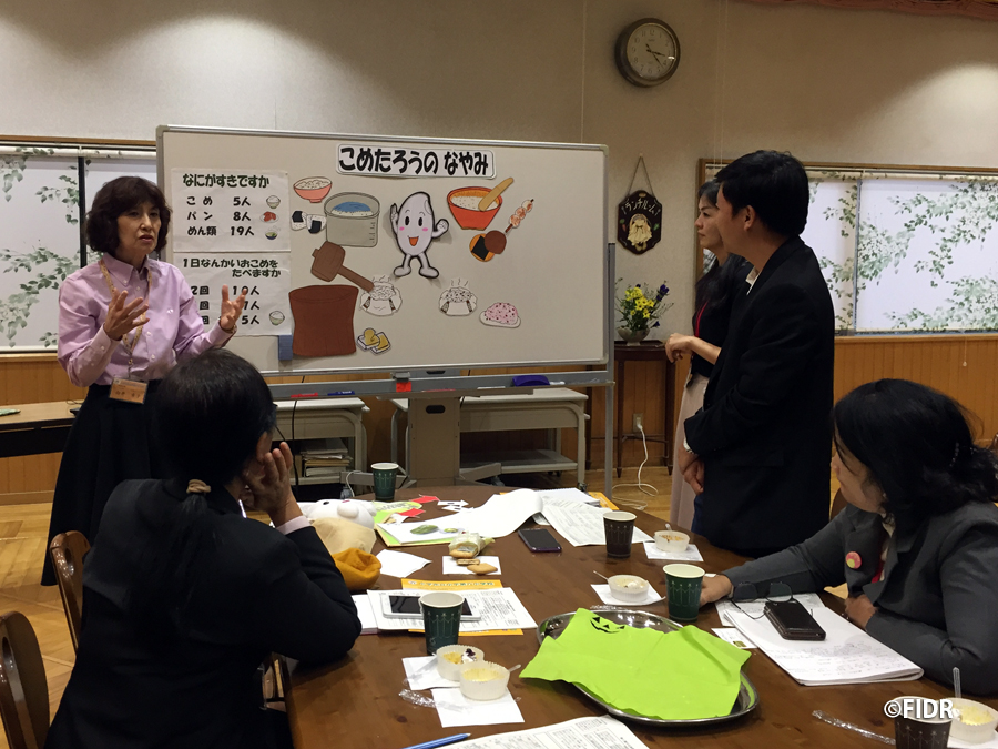 「食生活指針」の普及活動において、重要になってくるのは教材です。すでに、ポスター、リーフレットや冊子は、FIDRスタッフをはじめ、専門家や有識者の方々と何度も議論を重ねて完成しましたが、今度はこれらを使って子どもたちを指導する学校の先生や地域の保健センター職員、保護者などを対象にした指導用教材(指導マニュアルのようなもの)の開発に取り組んでいます。