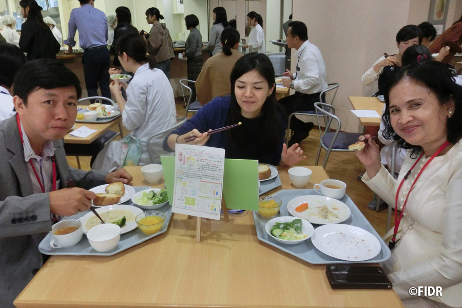 10月16日から22日まで、カンボジア教育・青年・スポーツ省学校保健局の幹部職員3名が日本を視察訪問し、栄養教育の仕組みや食育の実際、教員養成制度などについて知見を深めました。カンボジアでは、2021年から公立の小中高等学校の正規教科となる保健科目に、栄養分野を組み入れることとなりました。しかし、教員は栄養についての知識も指導経験も備えていません。そこでFIDRは、教員養成に携わる同省の職員が、栄養教育の内容や指導人材の育成について先進事例を学ぶ機会として、視察を実施しました。