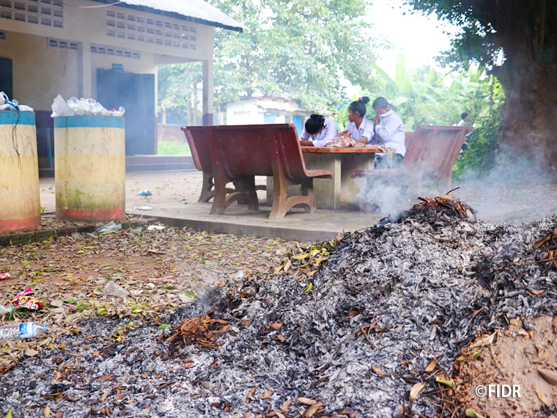 コンポンチャム州にある当プロジェクトのモデル校でも、これまでゴミの分別がされておらず、様々な種類のゴミを敷地内にあるコンクリート製の大きな「ゴミ置き場」に全て集めて一緒に燃やすという方法でゴミが処理されてきました。また、校内でゴミが燃やされることで発生する煙や有害物質による、生徒の健康への影響が懸念されています。