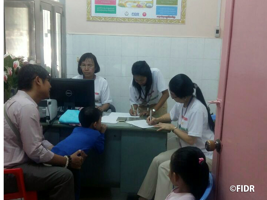 NPHでは、2014年からFIDRの支援のもと、カンボジアの国立病院で初めて、治療の一環として栄養面から患者をケアし栄養状態を改善する「栄養管理」の導入を進めてきました。現在は、外来病棟で身体測定により低栄養児をスクリーニングした後、各入院病棟で低栄養児および栄養指導が必要な患者に対して医師が栄養ケアプランを作り、それに基づき子どもたちひとり一人に合わせた食事指導や給食の提供を行っています。