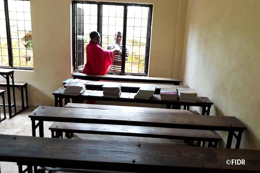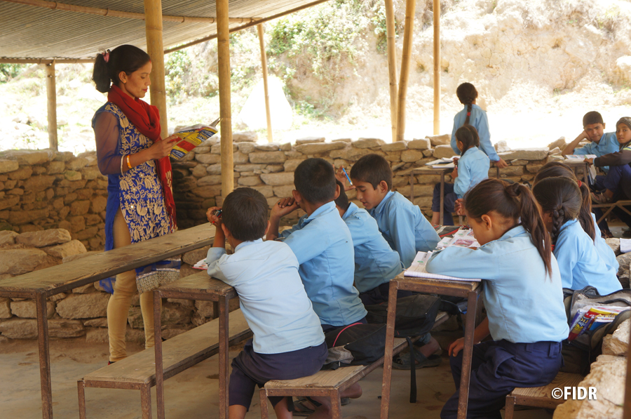 FIDRが校舎・トイレ建設支援をしている、山間部の学校に通う子どもたち。新校舎が出来るまでの間、仮設の校舎での学校生活についてシリーズでお伝えします。