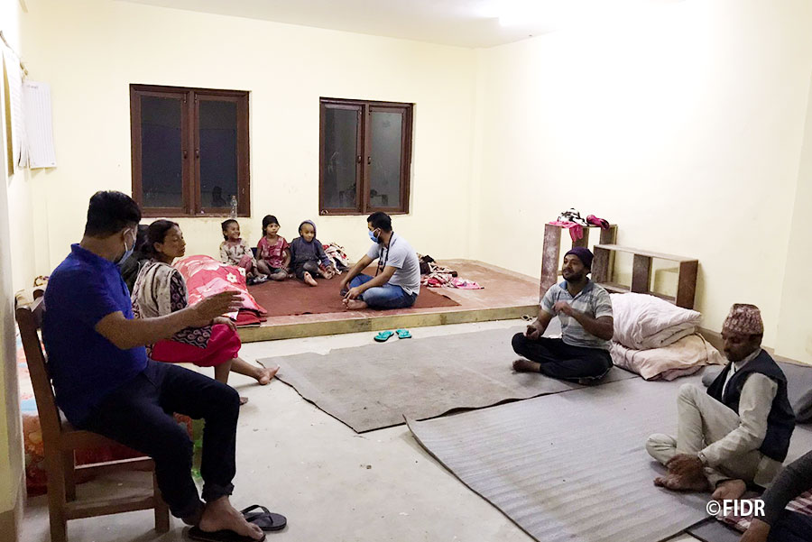 FIDRのプロジェクト地においても、各地区に検疫所や隔離施設が設置され、地区政府が対応をしています。これまで確認されている感染者のほとんどは、出稼ぎ先のインドからの帰還者です。陽性患者が隔離施設から逃げ出したケースもあり、村人の中では地区内での感染が拡大するのではないかという懸念が広がっています。