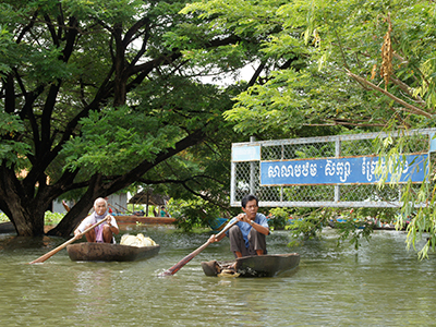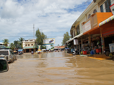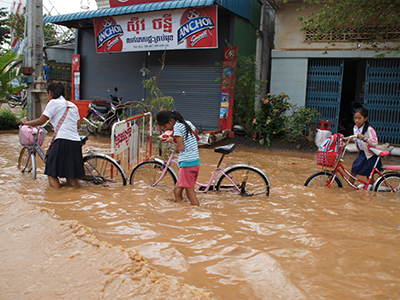 コンポンチュナン州3郡における洪水被災者7,548世帯と、小学校に通う児童約550人