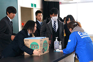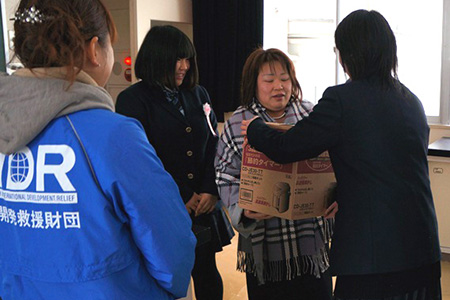 「すごく嬉しい」「本当にこんなに貰ってもいいの?」など、卒業生からは喜びの声が聞かれました。卒業式にみえたお母様は、「本当に助かりました。自分の家のものさえもすべて無くなってしまい、息子の新生活に新品の道具をそろえてあげられないのではないかとずっと不安でした」とおっしゃっていました。