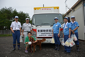 9月2日(金)、FIDRは、山崎製パン(株)にご協力いただき、岩手県山田町の仮設住宅26ヶ所(合計941戸)に、石油ストーブ、洗濯石鹸、お皿、食パンを届けました。お皿と食パンは山崎製パン(株)から、無償でご提供いただいたものです。また、これらの物資は、同社にご協力いただいたトラック5台により、物資集積所から各仮設住宅へ運搬されました。当日は、山崎製パン(株)の全国各事業所から社員の皆さん21名が、ボランティアとして各仮設住宅へ支援物資の配布をしてくださいました。