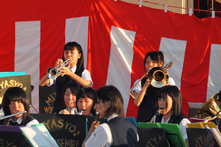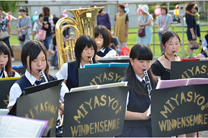 宮古商業高等学校吹奏楽部のみなさんが、昨年、この夏祭りに参加したのは、震災によって家を失くされた方たちの仮設住宅への移転がやっと落ち着いた頃、多くの人たちがこれからの生活に不安を抱えている時期でした。「宮古を元気にしよう!」と老若男女が盛り上がれる曲を選び、演奏を披露。好評を博したため、「今年もぜひ」とイベント主催者である市内の福祉施設から声がかかりました。