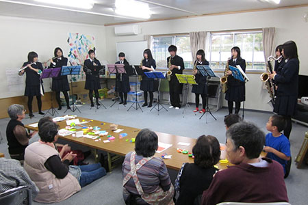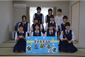 『高校生の力で宮古を元気に!』をテーマに、ボランティア活動に取り組んでいる県立宮古商業高等学校。今回は、吹奏楽部、書道部、茶道部、家政部の4部が力を合わせて、仮設住宅で暮らしている方々に元気を贈る企画を催しました。