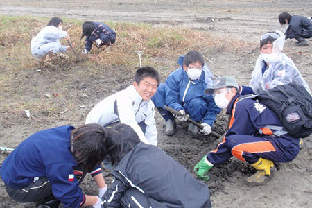 「常に中腰での作業だったためかなり疲れたものの、津波の被害にあわれた人々のことを思うと、休憩時間になっても作業をやめることはできませんでした。ボランティアを通して、私は誰かのために行動することの良さを改めて気付くことができました。」(2年男子)