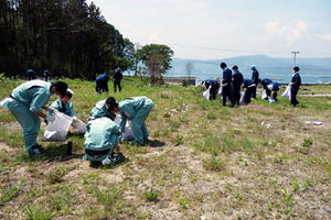 2012年6月1日、岩手県立水沢工業高等学校の『水工被災地ボランティアグループ』は、陸前高田市で草取りと細かいがれき撤去のボランティアを行いました。作業を行ったのは、被災前は72世帯が暮らしていたという住宅跡地。「以前は72軒あった家も、残ったのは2軒だけだった」と作業前に聞いた話を心に刻み、少しでも力になりたいと総勢220名で一生懸命作業に取り組みました。